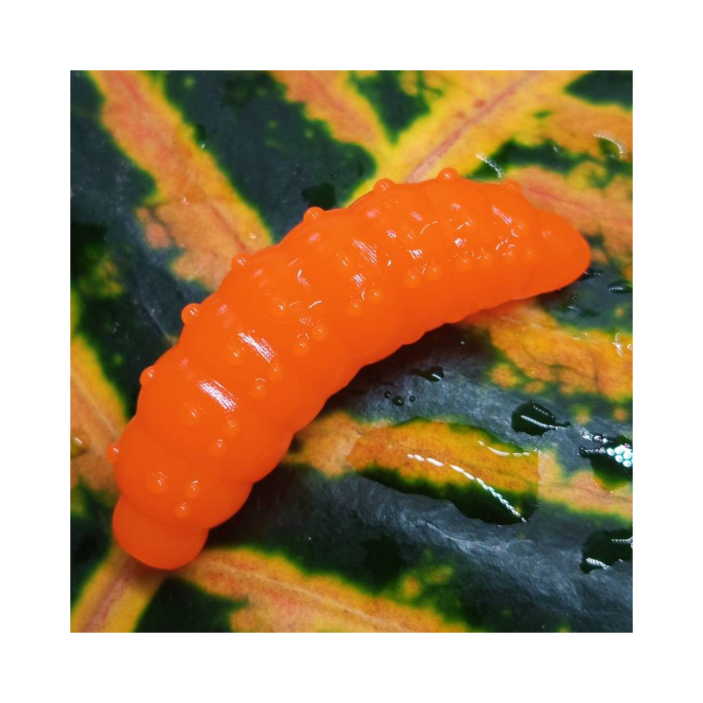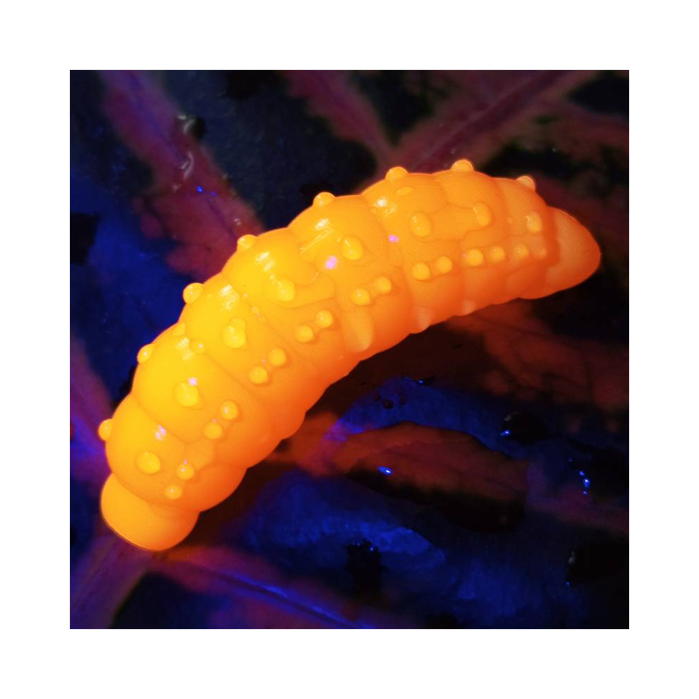Tato larva měří 36mm a váží 2,1g, a to už se počítá, protože s ním nahodíte opravdu daleko, i když nemáte zrovna speciální prut na lov pstruhů. Je tedy vhodný i pro sváteční lovce duháků či naprosté amatéry. Materiál je super měkký, měkčí než Nympcho!