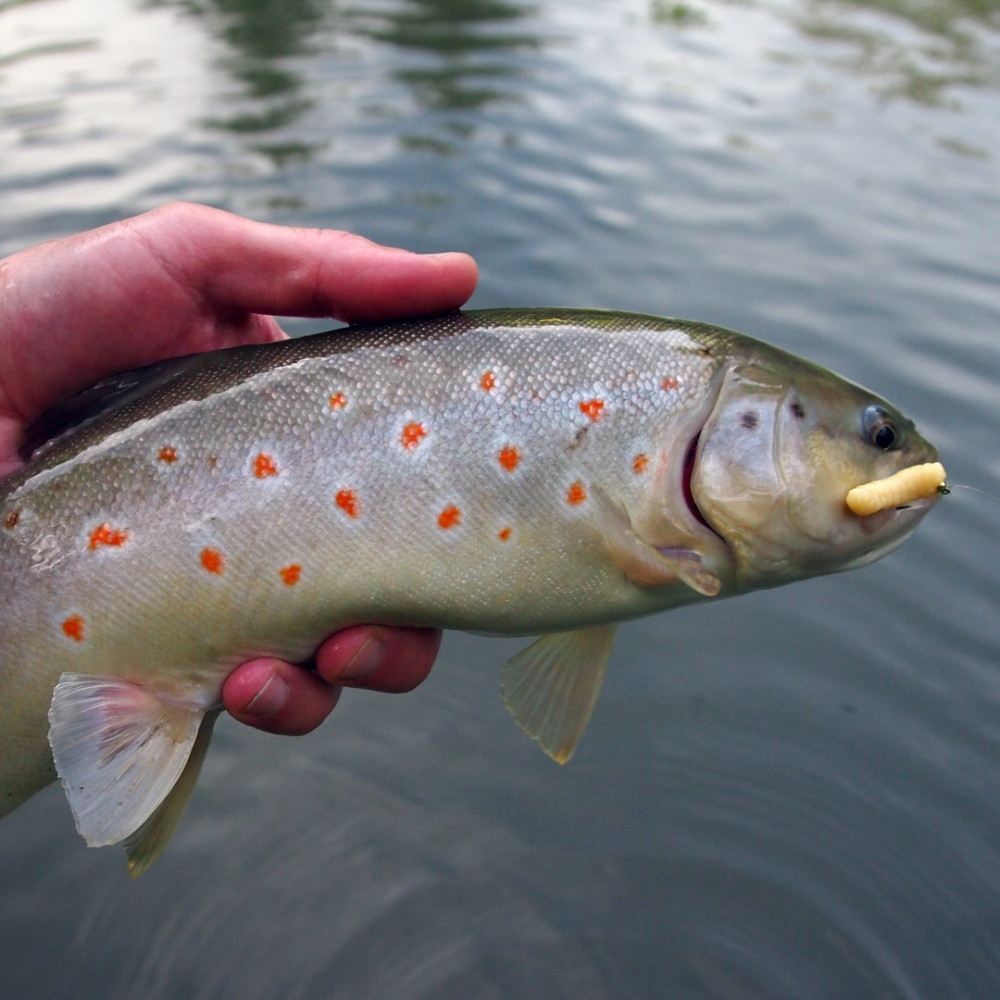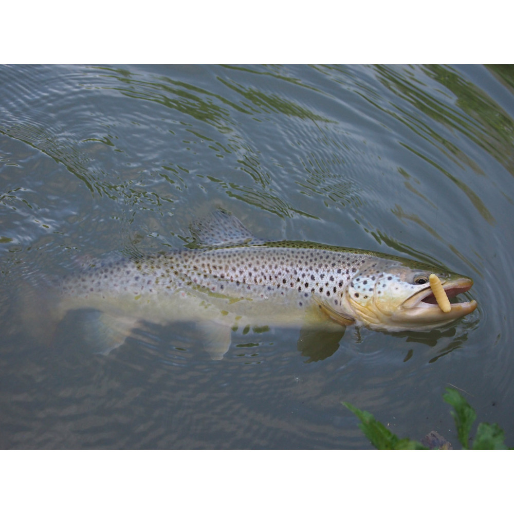 Realistická napodobenina larvy chrostíka určená na UL přívlač na pstruhy, jelce a bílou rybu