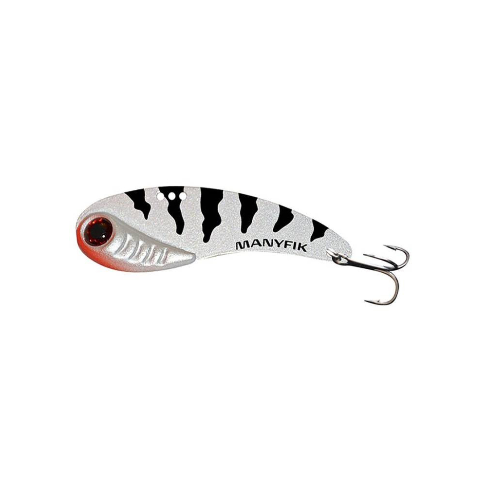 Kovová nástraha s plochým tělem a agresivní prací určená candátům a okounům.