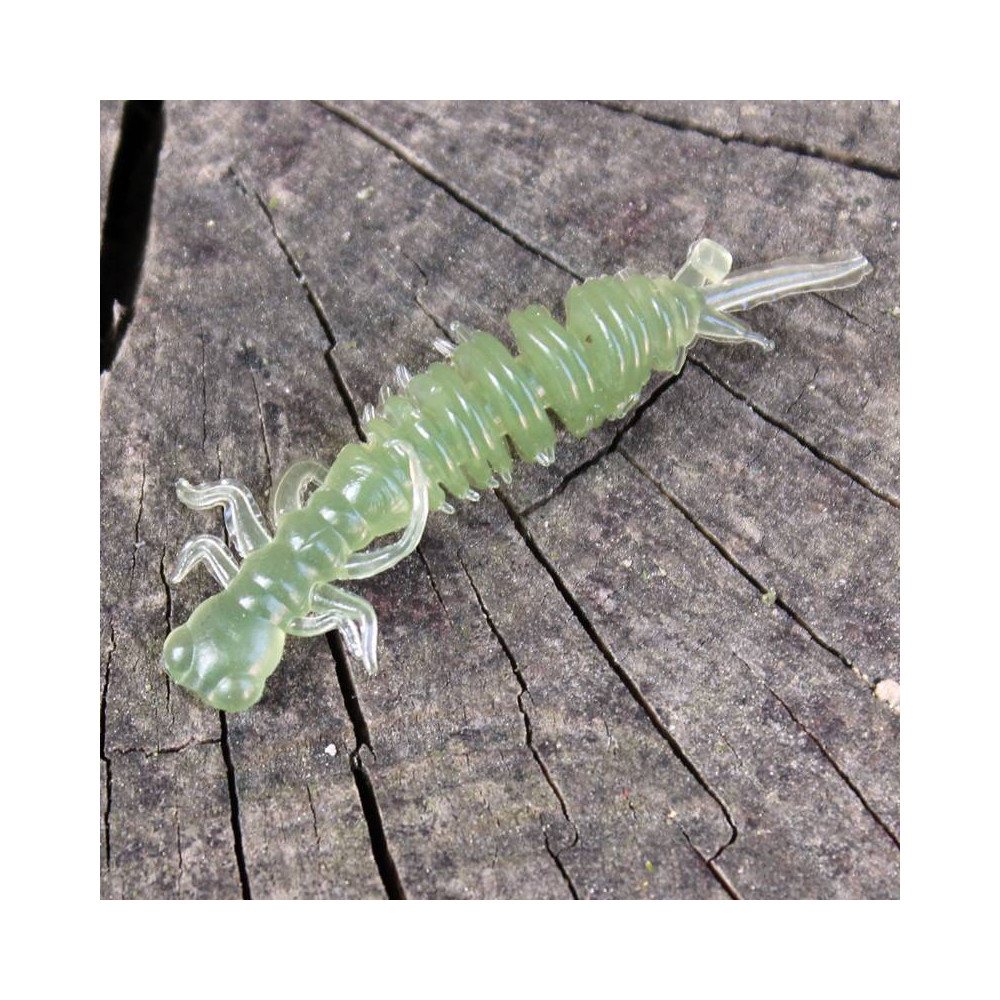 Damsel to 50mm je imitace larvy vážky. Tvar těla je kombinovaný - zploštělá hlavohruď a kruhová zadní část těla připomínající žebrování tělíčka Tanty.