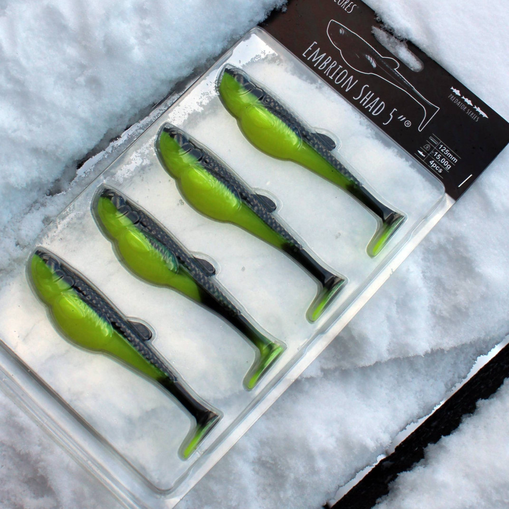 Embrion Shad je speciální projekt, který nám nedal spát po mnoho nocí. Naštěstí se nám naše odhodlání k dokonalosti, zkušenosti a pokusy a omyly vyplatily. Vytvořili jsme do nejmenších detailů propracovanou nástrahu, která skvěle funguje při snad nejoblíbenější metodě lovu z propadu, ale osvědčila se i při technikách jako Drop Shot, Carolina Rig nebo Texas Rig. Embrion Shad má tělo s výrazně zvětšenou břišní částí. Tento posun těžiště zaručuje netradiční a lákavou akci. Výraznou akci ocasu zaručuje zúžená ocasní část a široké kopýtko. Její účinnost umocňuje silné rybí aroma, které pomáhá oklamat i staré ostražité ryby.