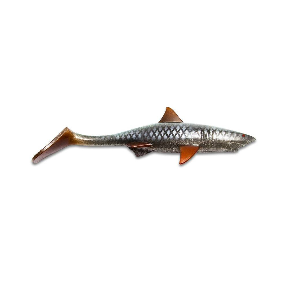 Shark Shad byl navržen švédským stavitelem nástrah Coffe Perssonem (Shark Shad Lures). Když Pontus Sjölund poprvé spatřil hark Shad na Facebooku, byla to láska na první pohled a když viděl jeho pohyb ve vodě, hned chtěl zahrnout tyto nástrahy do rodiny Kanalgratis. Zkontaktoval Coffeho a zbytek je už jen historie. Naddimenzované ocasní kopyto vytváří ve vodě značně silné pohyby schopné pohnout celou nástrahou, zatímco ploutve akci nástrahy zpomalují a zklidňují. Tato kombinace protikladů vytváří nástrahou s pomalou, ale silně kymácivou akcí - jako tragiční kopyto, ale s extrémně zpomalenou akcí, která dostane rybáře do kolen a štiku přesvědčí o své atraktivitě. Shark Shad může být vláčen při extrémně pomalé rychlosti stejně tak opravdu rychle, když chytáš v teplejší vodě. Tato nástraha přinesla mnoho opravdu velkých ryb a stává se klasikou pro mnoho rybářů po celé Evropě. Vyrobeno v továrně Kanalgratis na Srí Lance v souladu s ekologickým protokolem REACH z ekologického plastisolu bez obsahu ftalátů. Připrav se na pořádný zásek !