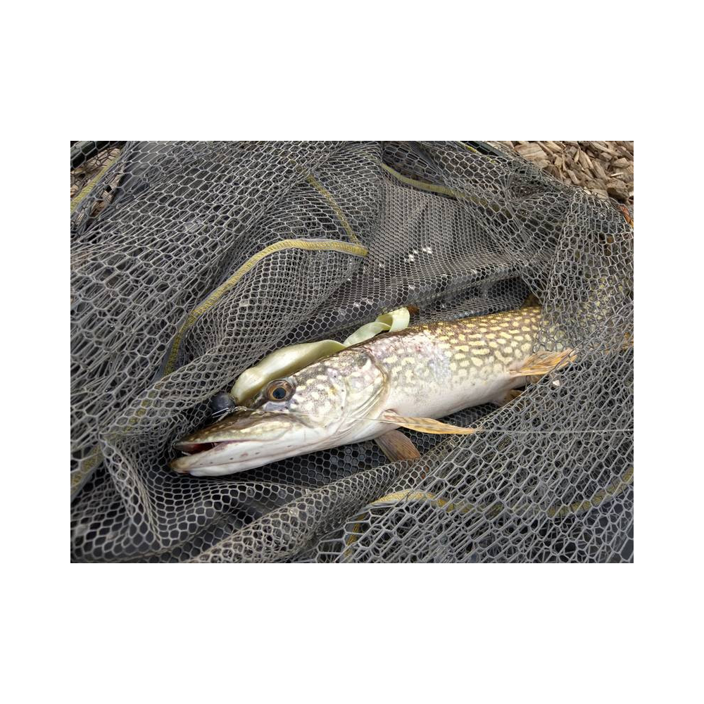 Pstruhový podběrák s pogumovanou sítí a magnetickým klipem na rukojeti.
