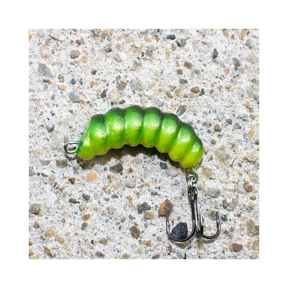 Plovoucí hmyzí wobler věrně napodobující housenku vyrobený v malé dílně v Polsku vyvinutý speciálně na lov jelce tlouště na řece na UL přívlač