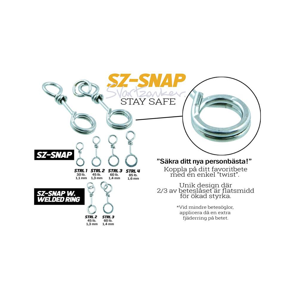Připni tvou oblíbenou nástrahu pouhým zatočením. Nejbezpečnější karabinka na trhu. Vyrobeno z vysoce kvalitní nerezové oceli. Unikátní design s 2/3 zploštěním kroužku pro extra zesílení. Při lovu s nástrahami s malým očkem přidej kroužek.