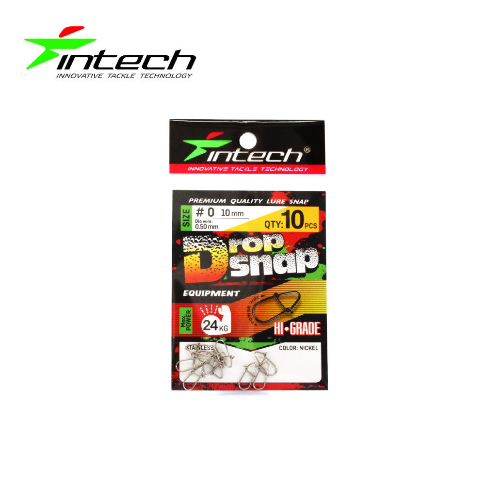 Karabiny Intech Drop Snap se vyznačují vysokou spolehlivostí. Jsou vyrobeny z vysoce kvalitního a pružného drátu, odolného proti korozi. Díky dobře navrženému tvaru je zatížení karabiny rozloženo po celé ploše, a tím se eliminuje nechtěné otevření. Pevnost karabin Drop Snap suverénně převyšuje výsledky karabin stejné velikosti od jiných výrobců. Řada Drop Snap je nejlepší volbou pro ty, kteří chtějí chytat velké ryby.