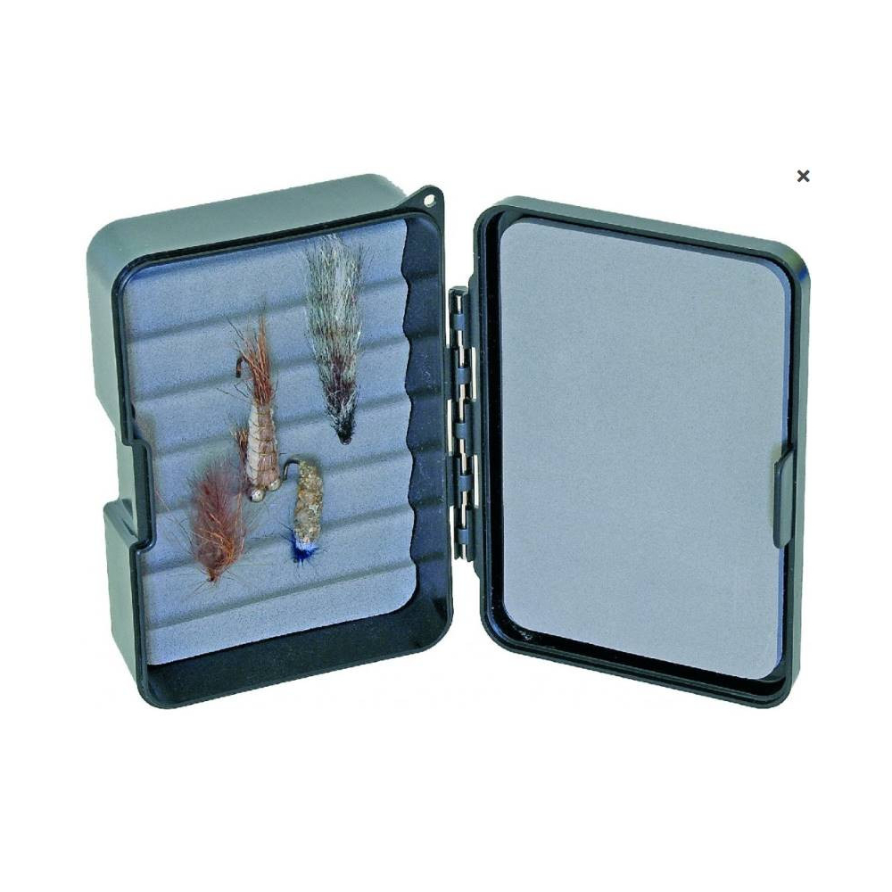 Kvalitní černá muškařská krabička s oboustranným polstrováním vhodná pro uchovávání mušek, strýmrů, jigů nebo tungstenů při lovu trout area. . Malá velikost je ideální pro strčení nástrah do kapsy vesty bez toho, aby rybáře omezovala v pohybu
