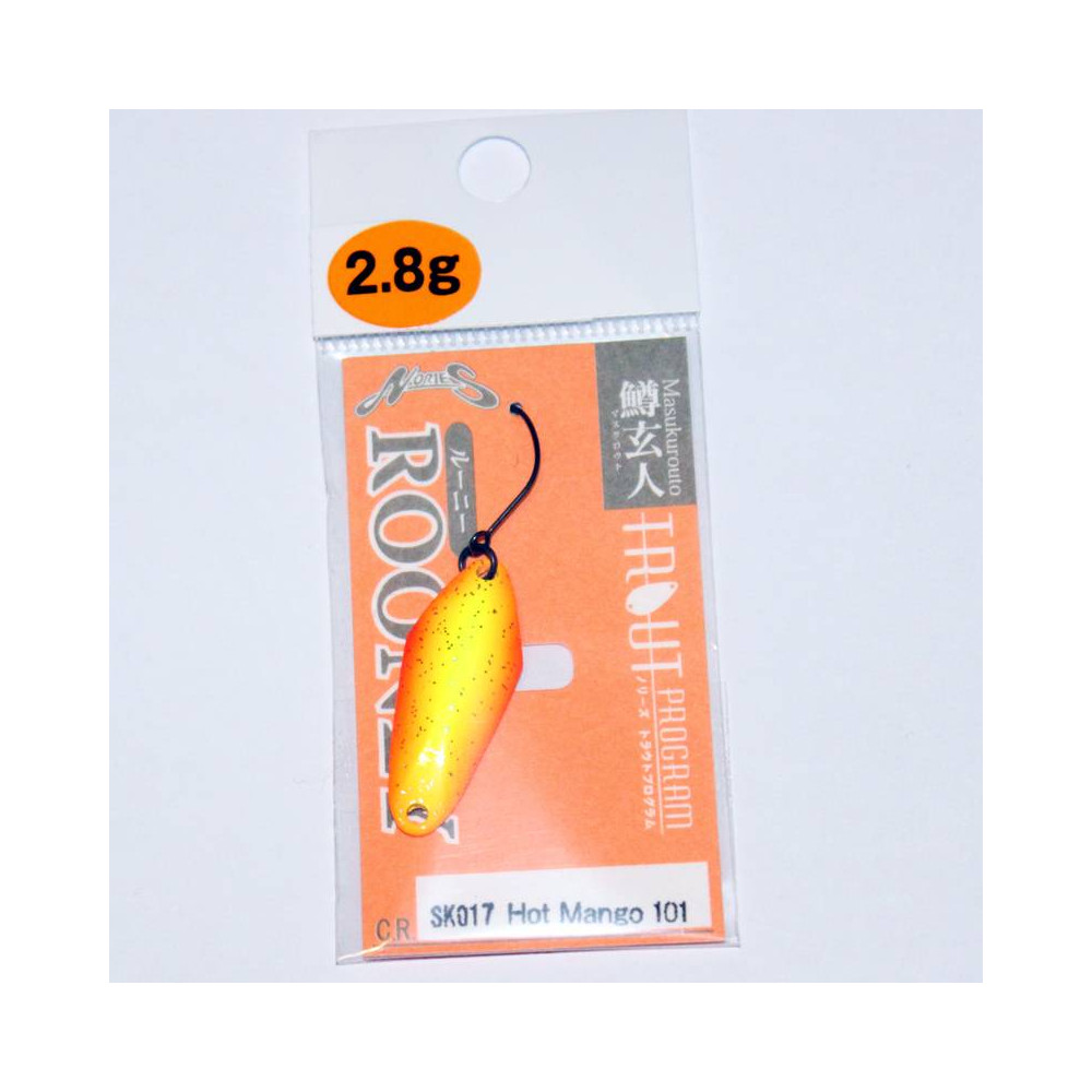 Masukuroto Rooney 2.8g byla navržena pod dohledem zkušených pstruhařů. Jejím charakteristickým rysem je jedinečná centrální plochá konstrukce. Díky tomu se tření vody vznikající při navíjení rozkládá po celé ploše nástrahy, takže ať už se navíjí pomalu nebo rychle, plandavka pracuje rovnoměrně a intenzivně. To rybáři umožňuje vyvolat nepravidelný pohyb samotnou prací s prutem, a vyprovokovat tak rybu k záběru.
