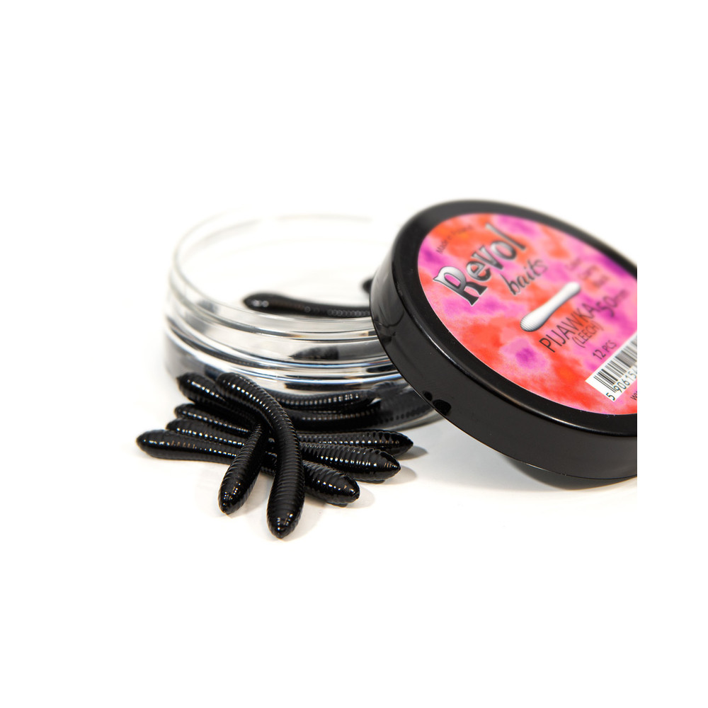 Pijavice 50 mm - velmi jemná imitace pijavice, která je přirozenou potravou ryb v mnoha rybářských oblastech. Díky měkkosti lze pijavicím dodat zajímavou akci a ryby je nasávají bez odporu. Pijavice 50 mm se prodávají v sadách po 12 kusech v praktických nízkých skleničkách, které obsahují doslova pár kapek aroma.