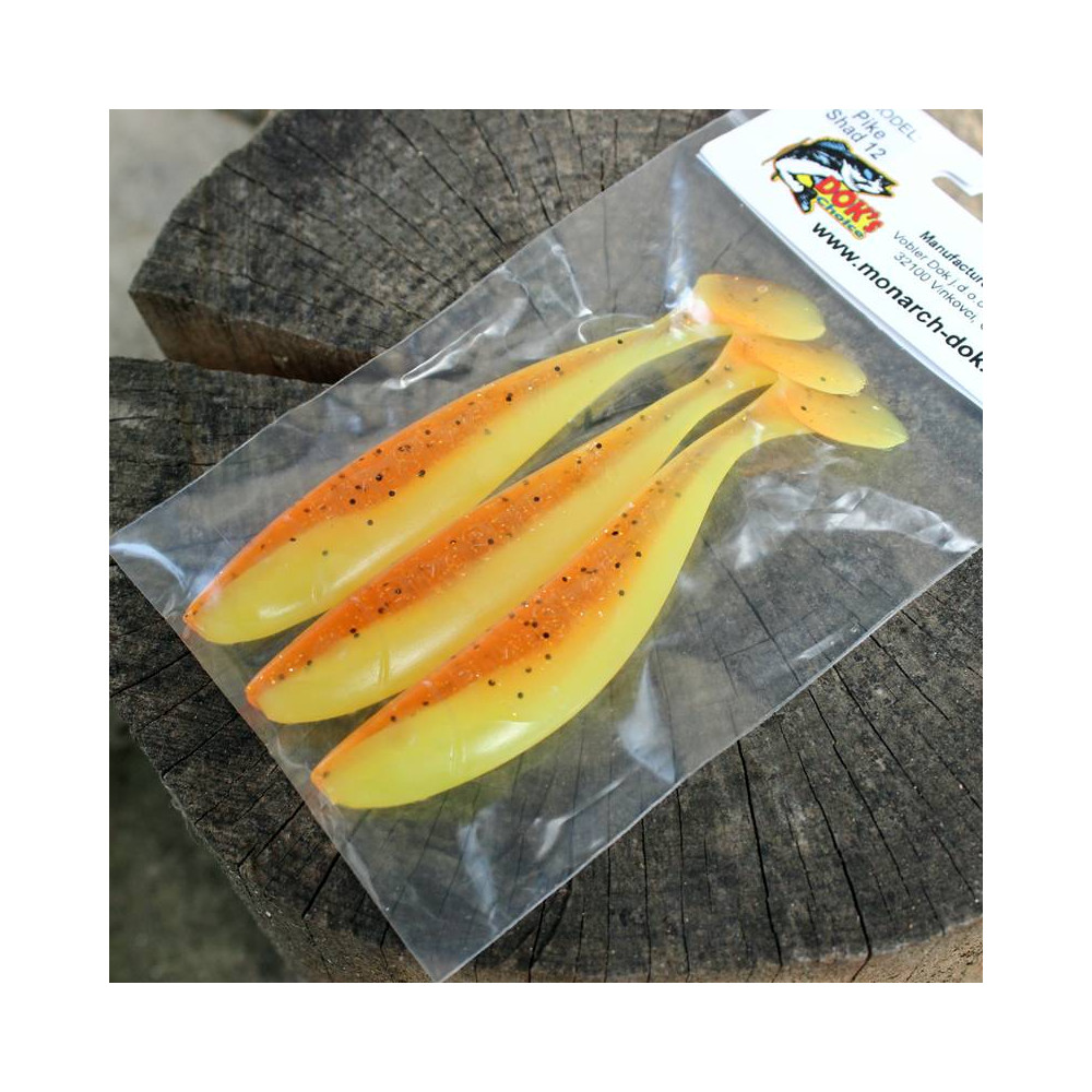 Monarch DOK PikeShad – tato podlouhlá nástraha je vlastně "silikonový wobler." Byla navržena pro dlouhé hody bez podélné rotace a přetáčení, takže může dosáhnout velmi dalekých hodů, právě tam, kde stojí velké ryby. Při chytání s offsetovým háčkem nebo lehkou jigovou hlavou její velký ocas způsobuje přenos energie v silné vibrace celé nástrahy. To vytváří unikátní akci, která z PikeShad činí skutečné sousto pro pořádné štiky, hlavatky, sumce a candáty. Nástraha je vyráběna v délkách 12, 14, 17 a 22 cm.