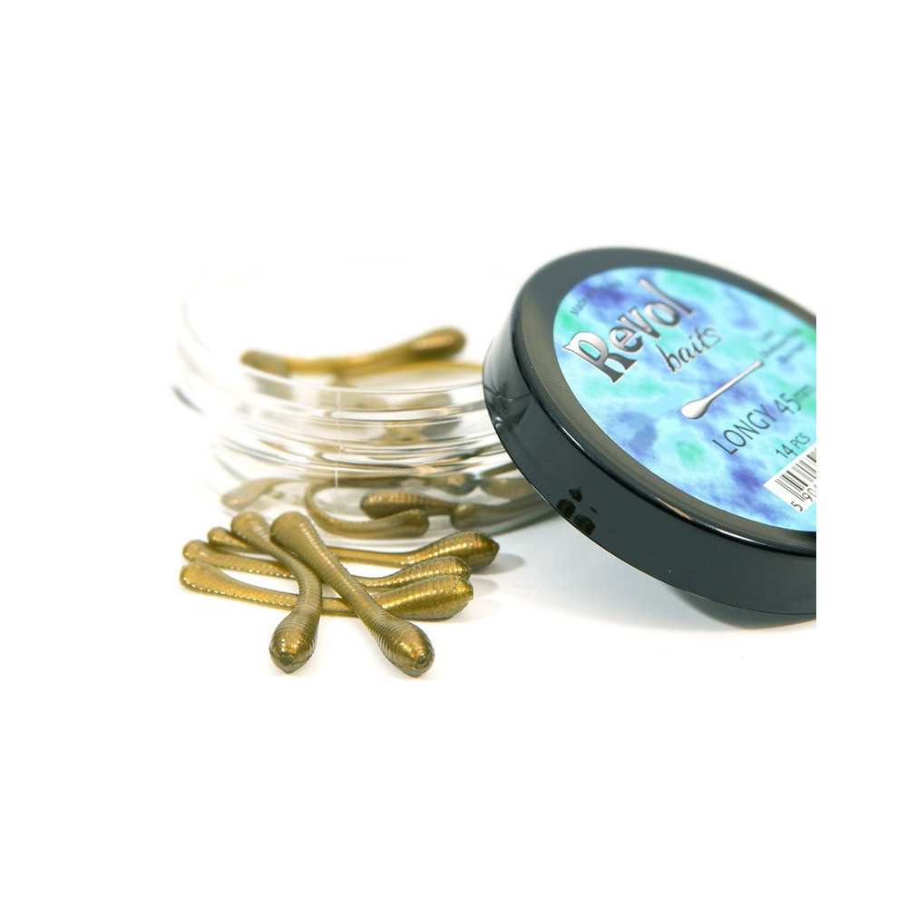 45mm Longi je štíhlá, zajímavá nástraha, která rybáři nabízí mnoho možností vedení. Silná přední část umožňuje pohodlné a bezpečné nastražení na háček, zatímco dlouhý, do stran zploštělý, měkký ocas funguje skvěle a umožňuje nástrahu oživit různými způsoby. Longi 45 mm se prodává v sadách po 14 kusech v praktických nízkých nádobkách, které obsahují doslova pár kapek příchutě. Své využití najde jak při trout area s tungstenem, lovu parem na řece s jigem nebo čeburaškou, tak při lovu okounů na drop shot. Prostě super imitace žížaly.