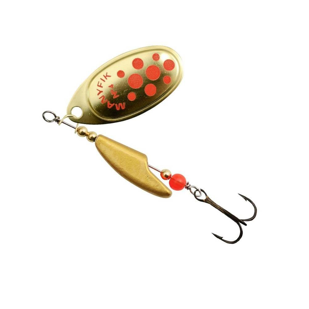 Rotačka Mobby F byla navržena tak, aby vyřešila odvěký problém rotačních třpytek - kroucení vlasce. Manyfik odpovídá - NIKDY VÍCE ! Korpus třpytky byl navržen tak, aby měl excentrický tvar a bránil přenášení rotace listu na vlasec. Klasické křidélko typu AGLIA potěší rybáře lovící okouny a štiky. Kulatý korálek je dodatečným spouštěčem záběrů, který pro okouny i štiky působí jako velmi dráždivé místo, kam směřuje svůj útok na nástrahu. Třpytky Mobby F jsou dostupné s křidélkem z niklu (stříbrné) nebo z mosazi (zlaté a lakované).