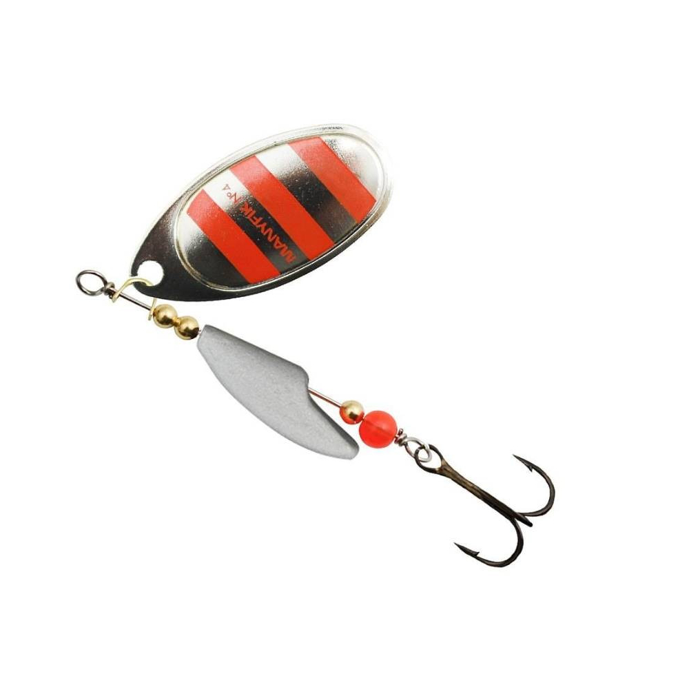 Rotačka Mobby F byla navržena tak, aby vyřešila odvěký problém rotačních třpytek - kroucení vlasce. Manyfik odpovídá - NIKDY VÍCE ! Korpus třpytky byl navržen tak, aby měl excentrický tvar a bránil přenášení rotace listu na vlasec. Klasické křidélko typu AGLIA potěší rybáře lovící okouny a štiky. Kulatý korálek je dodatečným spouštěčem záběrů, který pro okouny i štiky působí jako velmi dráždivé místo, kam směřuje svůj útok na nástrahu. Třpytky Mobby F jsou dostupné s křidélkem z niklu (stříbrné) nebo z mosazi (zlaté a lakované).