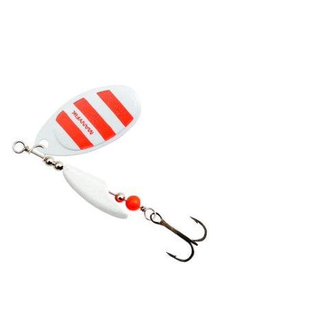 Rotačka Mobby F byla navržena tak, aby vyřešila odvěký problém rotačních třpytek - kroucení vlasce. Manyfik odpovídá - NIKDY VÍCE ! Korpus třpytky byl navržen tak, aby měl excentrický tvar a bránil přenášení rotace listu na vlasec. Klasické křidélko typu AGLIA potěší rybáře lovící okouny a štiky. Kulatý korálek je dodatečným spouštěčem záběrů, který pro okouny i štiky působí jako velmi dráždivé místo, kam směřuje svůj útok na nástrahu. Třpytky Mobby F jsou dostupné s křidélkem z niklu (stříbrné) nebo z mosazi (zlaté a lakované).