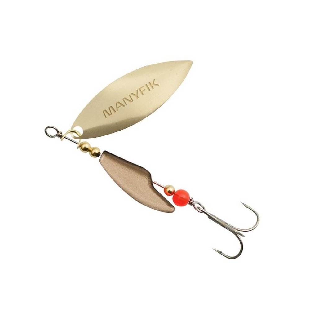 Korpus třpytky byl navržen tak, aby měl excentrický tvar a bránil přenášení rotace listu na vlasec. Umístění křidélka typu long dává nástraze větší odlesky a současně na nástrahu působí menší odpor vody. Úhel pracujícího listu činí 20-25° nebo ještě méně, díky čemuž MOBBY V řeže vodu rychleji a plynuleji při menší potřebě síly. Třpytky Manyfik Mobby V se skvěle osvědčily při lovu velmi aktivních ryb ve vodách s vyšší teplotou, kdy se metabolismus ryb zrychluje a ryby ochotně berou. Kulatý korálek je dodatečným spouštěčem záběrů, který imituje rybí jikru, což je zejména pro pstruha velmi dráždivé místo, kam směřuje svůj útok na nástrahu. Třpytky jsou dostupné s křidélkem z niklu (stříbrné) nebo z mosazi (zlaté).