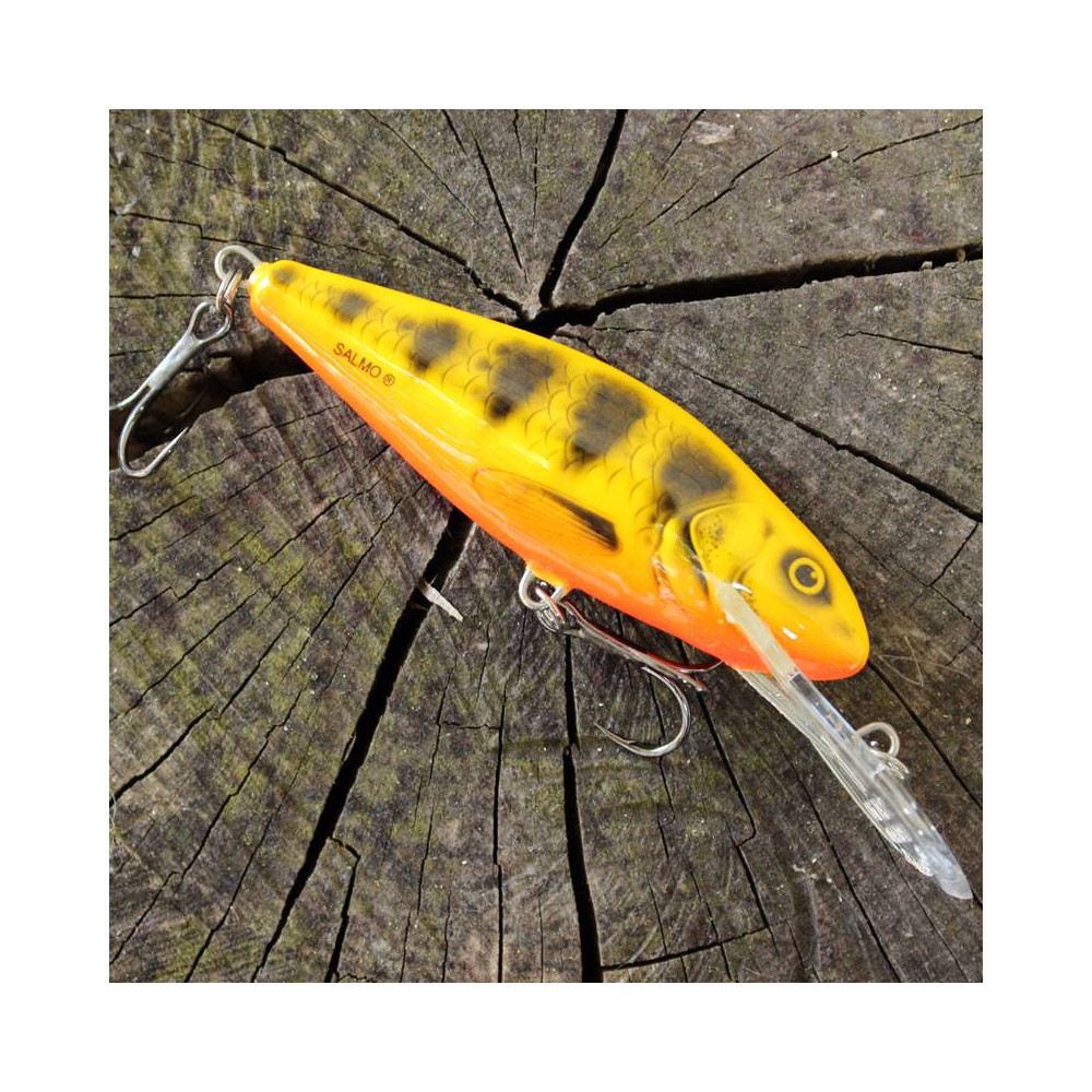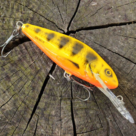 Salmo Perch je dostupný v mnoha provedeních, je efektivní v mnoha nejrůznějších situacích. Pro otáčení doporučujeme Shallow Runner(SR) a Floating(F) verze klasických crankbaits. Pomalé navíjení s příležitostnými pauzami nebo cukáním špičky prutu je velice účinné. SR verze je typický twichbait, perfektní pro mělká a zarostlá místa. Když použijete dlouhé tahy prutem a navíjení k odstranění průvěsu. Používání této metody se nástraha pohybuje do stran a často láme povrch vodní hladiny. Tento druh akce přerušovaný příležitostnými pauzami může být absolutně neodolatelný pro dravce vodní říše. Perch v Super Deep Runner(SDR)je opravdu speciální nástraha. Velká lopatka může snížit nahazovací schopnost, takže tato verze je spíše doporučována pro trolling. Ohromné hloubky dosahované těmito návnadami (Perch 14SDR se potápí až do 12 metrů) Je dělají vrcholem jejich třídy mezi trollongovými nástrahami
