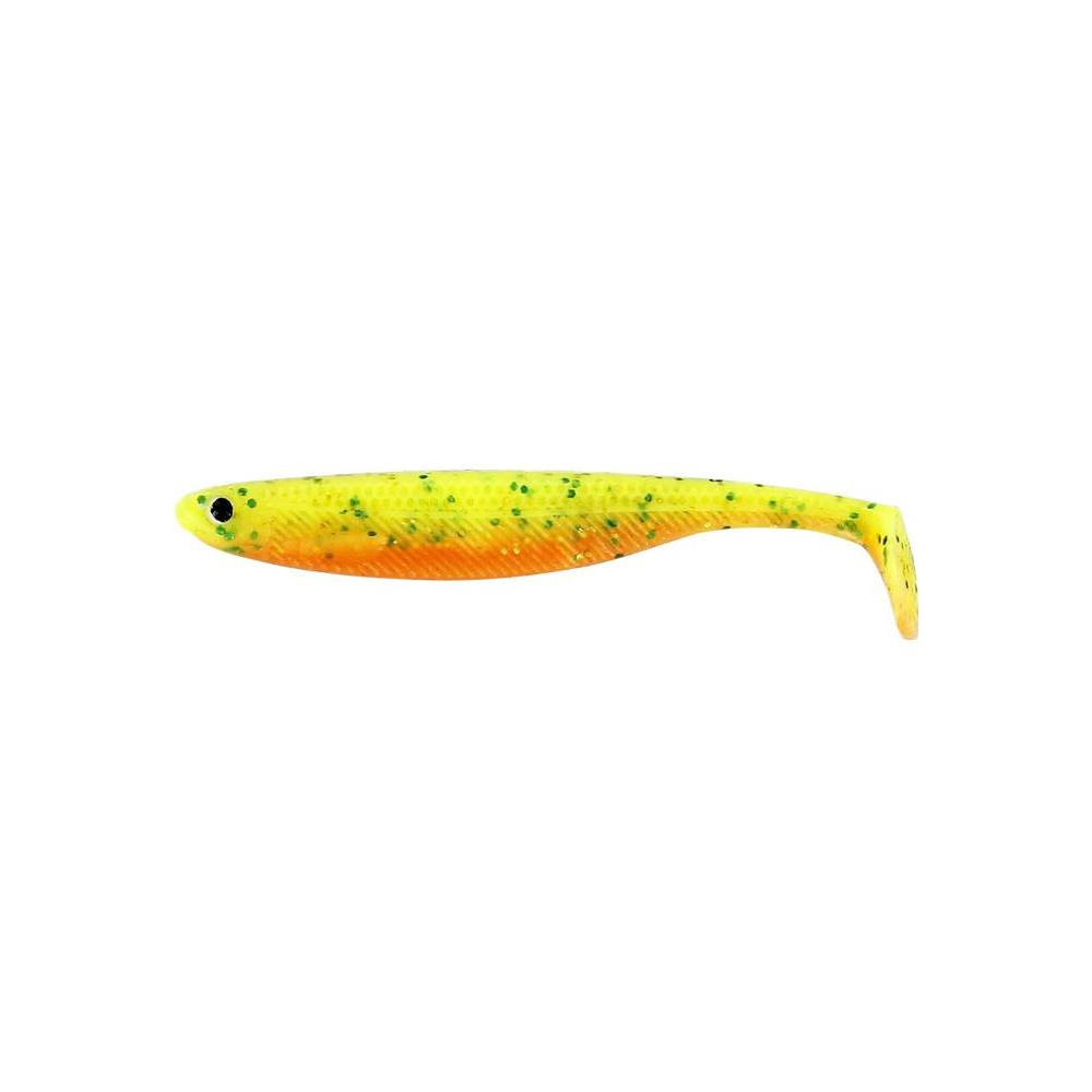 Droboučný okounový ripper ve výrazných barvách se žlutozeleným hřbetem a oranžovým bříškem. Doporučujeme zejména s čeburaškami.