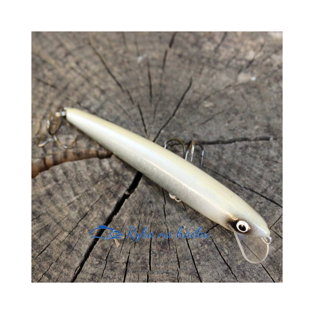 Štíhlý wobler od Tomka Siudakiewicze ve tvaru oukleje ručně dělaný, určený na lov candátů večer v mělké vodě