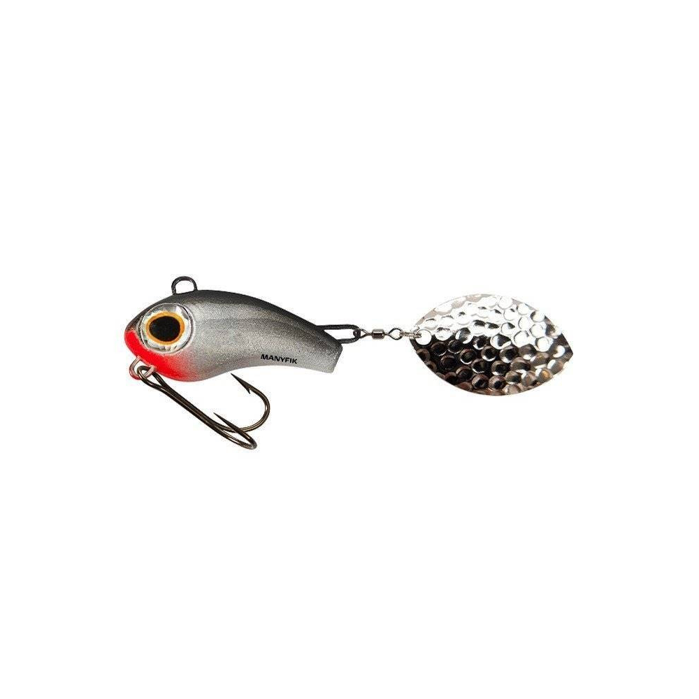 Těžká třpytka s rotačním plíškem na ocásku určená na okouny a pstruhy