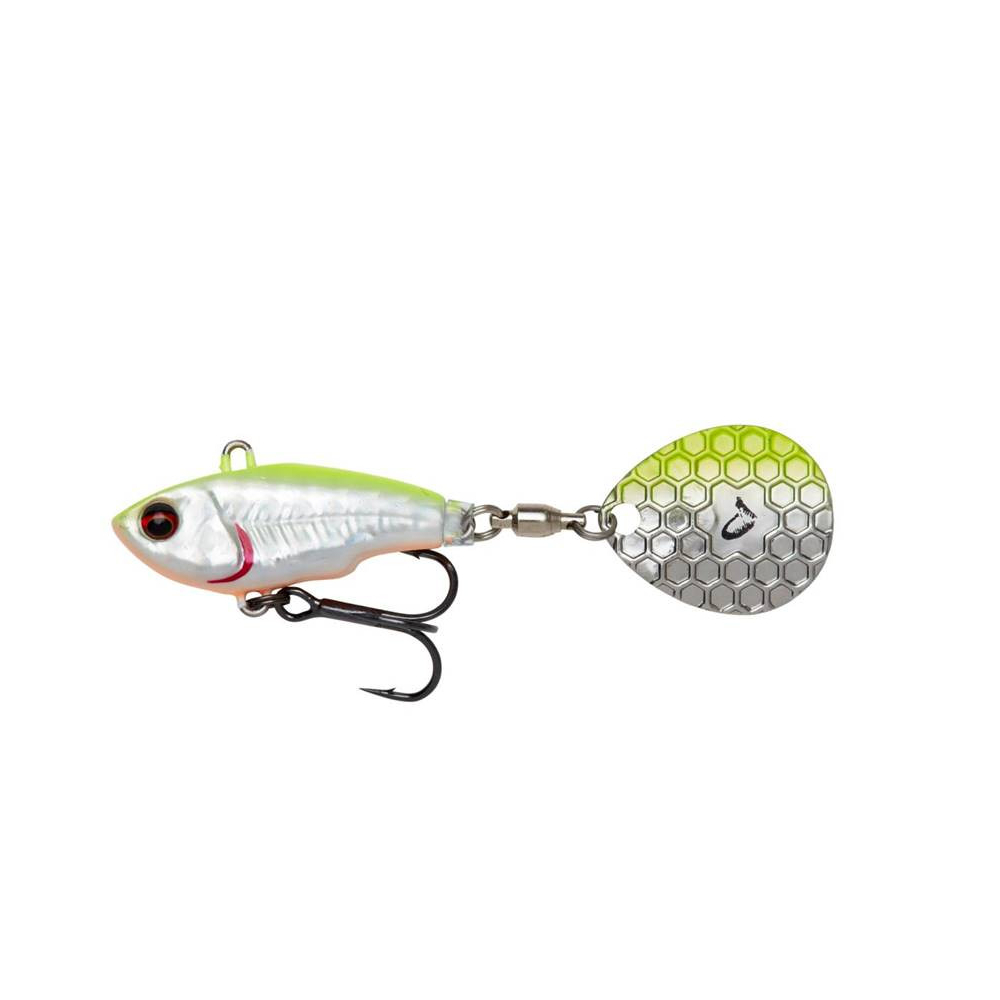 Savage Geat FAT TAIL SPIN je velmi všestranná nástraha určená k dalekým hodům. Má skvělou akci stejně tak v propadu, tak při navíjení - nástraha současně pracuje i pomocí rotačního plíšku ocásku jako klasická rotačka, ale nekroutí vlasec. Tento pohyb velmi silně provokuje dravce do útoku. Nahoď ji, veď ji, měň rychlost, nech ji propadat na napnuté šňůře a jiguj. Fantasii vedení se meze nekladou. Jedná se o znamenitou nástrahu na okouna, bolena, pstruha i štiku. Super ostré trojháčky SGY.