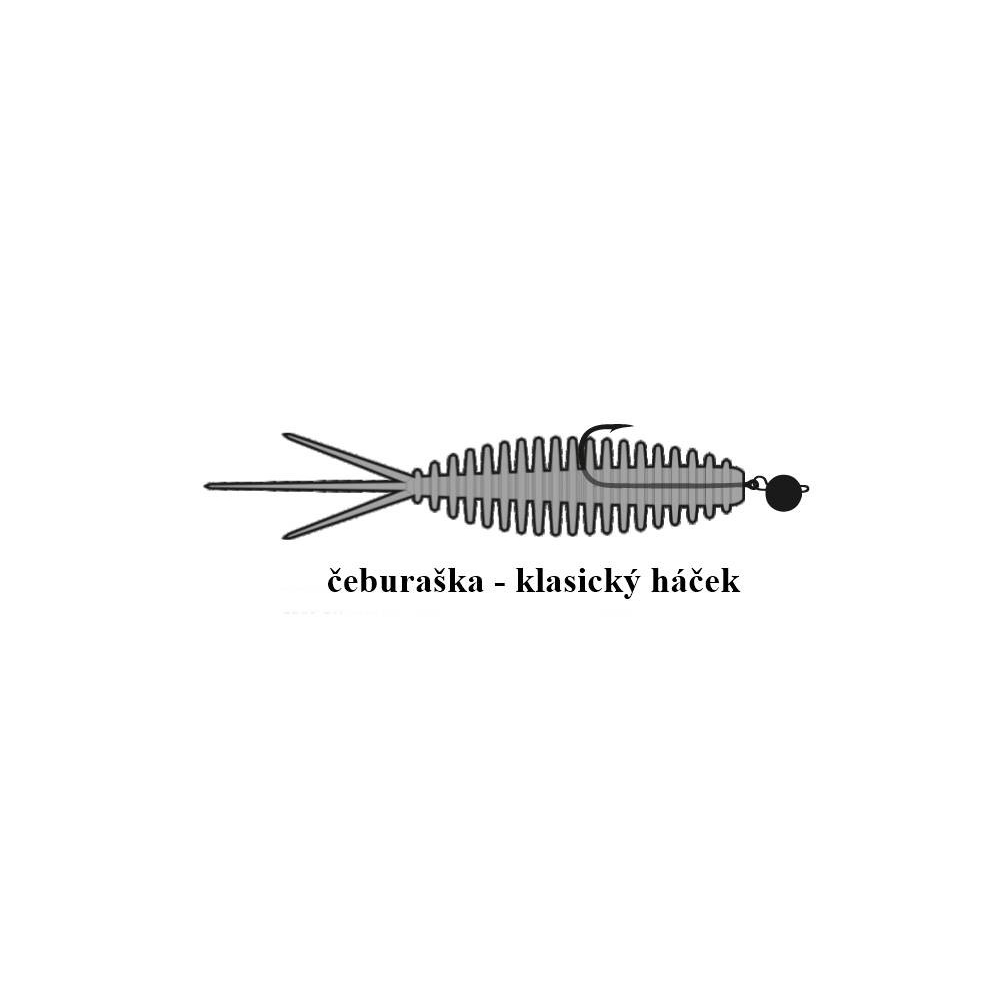 Nástraha typu Tanta v nabídce Libra Lures dlouho chyběla. No tak už nechybí. Na základě žádostí mnoha rybářů a závodníků z oblasti Trout Area jsme vytvořili model Turbo Worm. Díky našemu speciálnímu, silně plovoucímu materiálu se nám podařilo vyrobit tohoto pruhovaného "zabijáka". Jeho hlavním cílem jsou pstruzi a okouni, ale stejně úspěšný je i při lovu jelců nebo jiných bílých ryb. Tenká konstrukce a volný prostor mezi obručemi zajišťuje jeho maximální pohyblivost. Díky našemu jedinečnému materiálu je zase vysoce odolný. Nástraha se při záběru do ocásku natáhne a zase smrští bez toho, aby ji ryba roztrhla. Je tak schopna vydržet i opakované útoky dravců, aniž by se poškodila. Tělo je na konci opatřeno třemi nožičkami, které nástrahu činí ještě atraktivnější. Díky silnému žebrování Turbo Worm při vedení intenzivně vibruje a v proudu se při použití čeburašky nebo jig rigu vychyluje do stran, což zvyšuje jeho atraktivitu. Použití jedinečné směsi s výrazným a dlouhotrvajícím aroma zaručuje, že této nástraze neodolají ani ty nejopatrnější ryby. Vhodná pro tekoucí i stojaté vody.