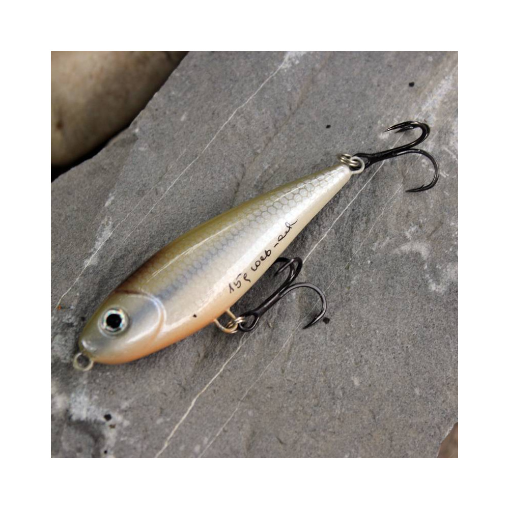 Bezlopatkový wobler na boleny napodobující ouklej s jemnou mihotlivou akcí, kymácením v boky a vynikajícími hody do dálky