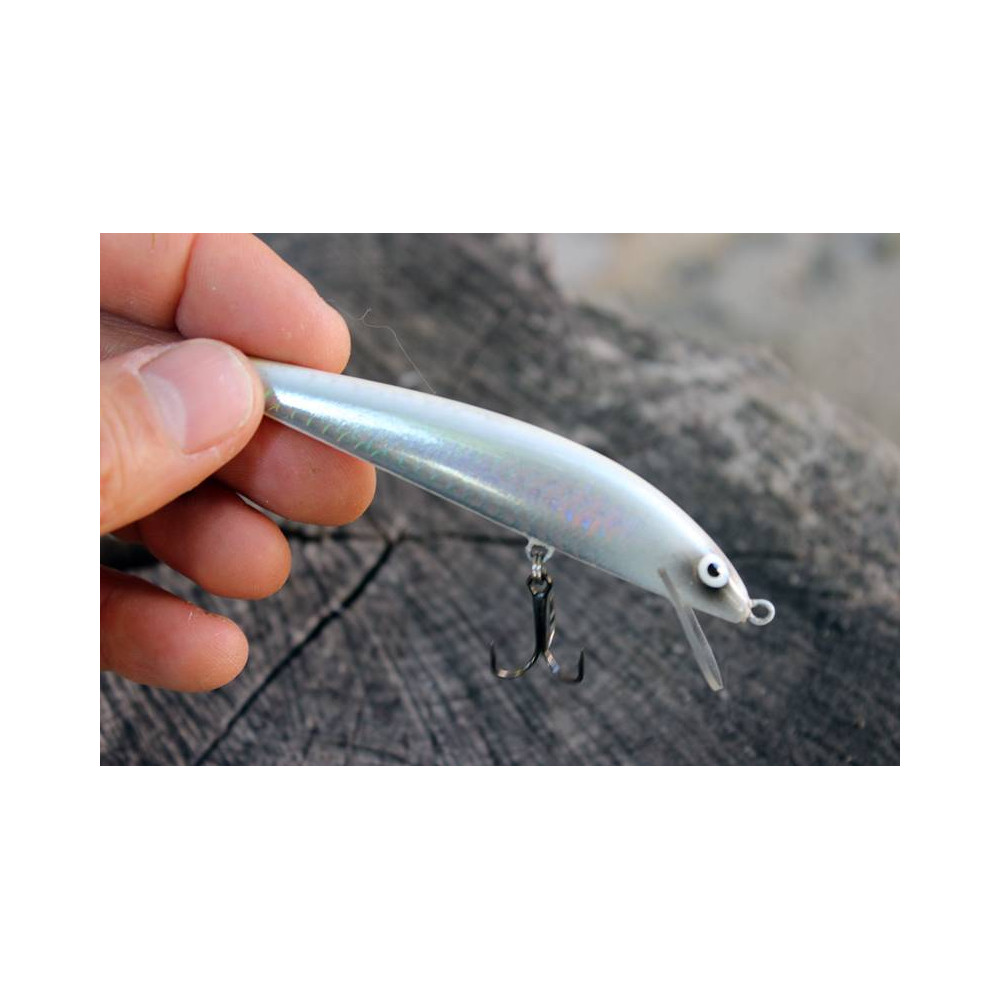 Štíhlý wobler od Tomka Siudakiewicze ve tvaru oukleje ručně dělaný, určený na lov candátů večer v mělké vodě